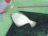 そのうち後でなにやら声がすると思ったら、どうやら義兄にヒラメがヒットしたらしい、上がってきたのが51cmの食べ頃サイズ。気合を入れ直しては見たが結局ヒラメは針には乗らなかった。