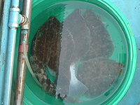 水深は約60mと結構深く、ドロ場のためオモリが刺さり少し釣りずらい。しかしほどなくアタリがありマコガレイとアイナメがダブルで上がってきた、と幸先は良かったのだが・・・