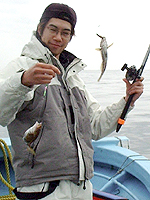 ただし全体でダブルはこれ一回キリ、サイズもみんなこんなもの。あきらめかけていたところへ変なアタリが「チチチチ・・・」微妙なカレイ類のアタリ、もしやと思いじっくり待ってから合わせる、合わせた瞬間は半信半疑だったが、途中で急に重くなった、シメシメ思った通りだ。上がってきたのは28センチのナメタガレイ、これで今回は満足してしまった。